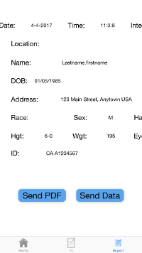 The report page is generated based on the data fields from the FI screen. You can email the report in .PDF format if desired from the report screen. Otherwise the data from the ID can be emailed directly from the FI screen.